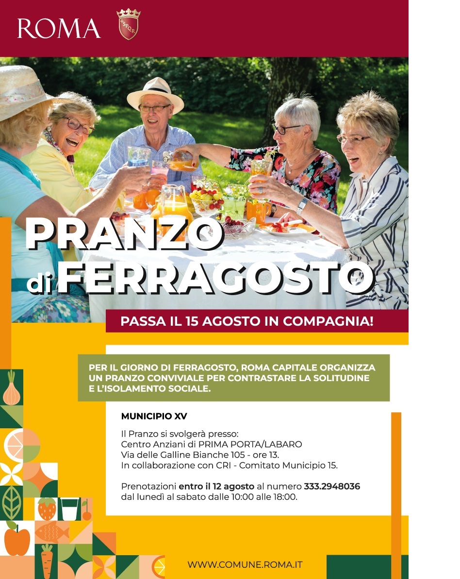Un’opportunità in più per contrastare la solitudine e l’isolamento sociale e per occuparci di una delle categorie più fragili della nostra società. Nel nostro territorio il pranzo di Ferragosto, organizzato in collaborazione con il Comitato Municipio 15 della Croce Rossa Italiana, che ringrazio, si svolgerà al Centro Anziani di Prima Porta/Labaro, in Via delle Galline Bianche 105, a partire dalle 13.